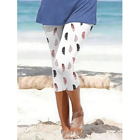 Naisten Caprihousut Leggingsit Loma Tyylikäs Klassinen Vasikka-Length Keskikorkea vyötärö Kuvitettu Eläin Painettu Mukavuus Mukava Elastinen ulko- Loma Pyhäpäivä Sininen Valkoinen Pinkki Kesä Kevät