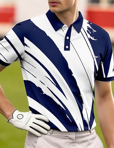 Miesten Geometrinen Poolopaidat Lyhythihainen Poolopaidat Kauluspaidat Vapaa-aika Urheilu- ja treenivaatteet Arki-asut 3D-tulostus Napit Hengittävä verkkokangas Kevät kesä Sininen Kulta