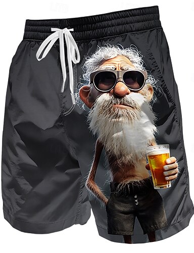 Miesten Hauska Olut Vanha mies Uimahousut Uimashortsit Surffishortsit Keskivyötärö Retro / vintage ulko- Loma Arkikäyttö Sivutaskut Verkkovuori Joustava kiristysnyöri vyötäröllä Suunnittelija Vaatetus
