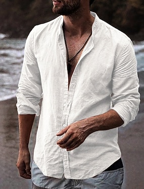 Miesten Paita Kesä paita Ranta-asut Rento paita Puuvillainen pellava paita Button Up paita Tavallinen Kausaliteetti Päivittäin Musta Valkoinen Vaalean sininen Pitkähihainen Kauluskäänne Kesä Kevät