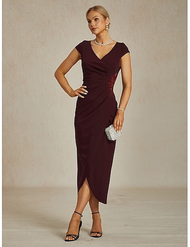 Naisten Maksimekko Kotelomekko Tyylikäs Normaali Yhtenäinen väri Lyhythihainen V kaula-aukko Viini Kesä Kevät