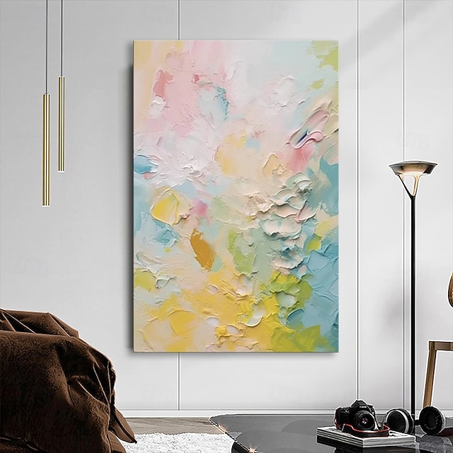 [Suunnittelun kohokohdat] Maalaus esittelee upean sekoituksen pehmeitä sävyjä, kuten vaaleanpunaista, sinistä, keltaista ja vihreää, paksut maalikerrokset tuovat syvyyttä ja liikettä. Impressionistinen tyyli vangitsee rauhallisuuden ja energian tunteen, mikä tekee siitä huomiota herättävän keskipisteen missä tahansa ympäristössä.