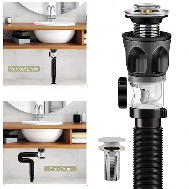 kylpyhuoneen lavuaarin viemärisarja joustavalla, laajennettavalla P-lukolla, pesualtaan viemäri sopii useimpiin viemärireikiin, sisäänrakennettu tukkeutumisenestoventtiili, hajuton kylpyhuoneen #10394649