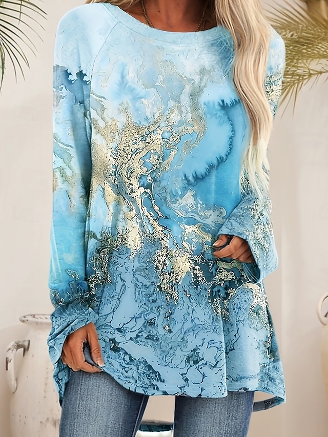 Naisten T-paita Painettu Kuvitettu Geometria Vintage Tyylikäs Vapaa-aika Pitkähihainen Tiukka pyöreä kaula-aukko Pitkät topit Päivittäin Sininen Purppura Apila Syksy Talvi #10883408