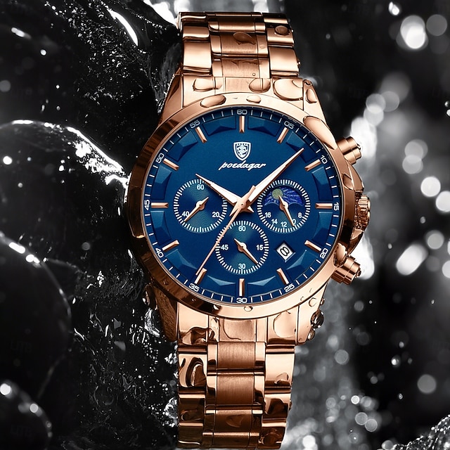 Miesten Kvarttikello Luksus Rentoa Liiketoimintaa Valoisa Kalenteri Päivämäärä Viikko Vedenkestävä Ruostumaton Teräs Kello #11515053