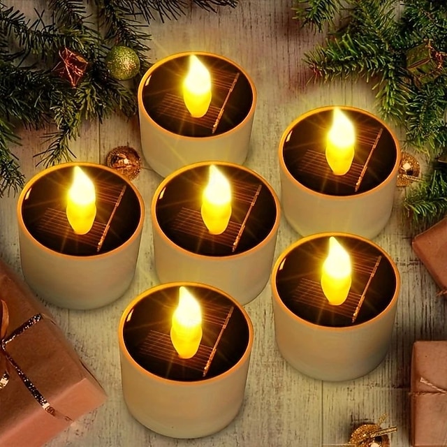 6/12 kpl aurinkokynttilävalo ulkoilmaan vedenkestävä LED ilmanliekitön aurinkoteekynttilä loma- tai kotikäyttöön parveke puutarha terassi portaat häätovaala#12044688