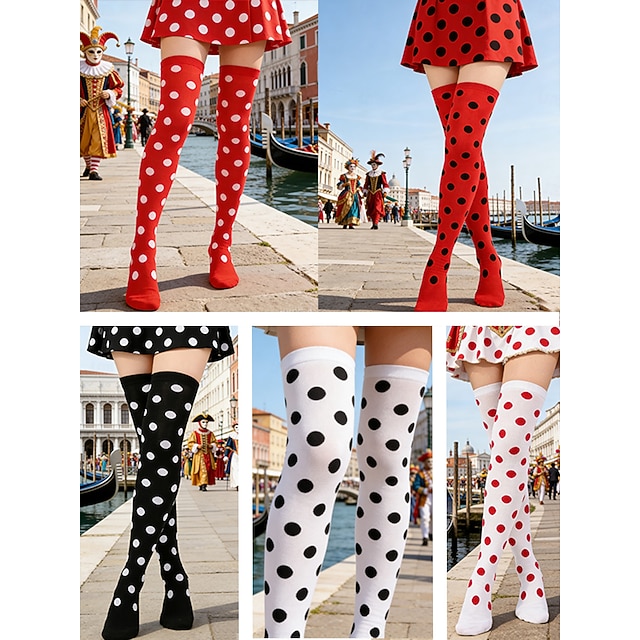 Naisille Mardi Gras 5-Pakkaus Pilkku Over-the-Knee -sukkia Värikkäät Karnevaalipuvut Joustavat Retro-juhlalahjat Festivaaleille  Naamiaisjuhliin 2026 - $19.99 –P7
