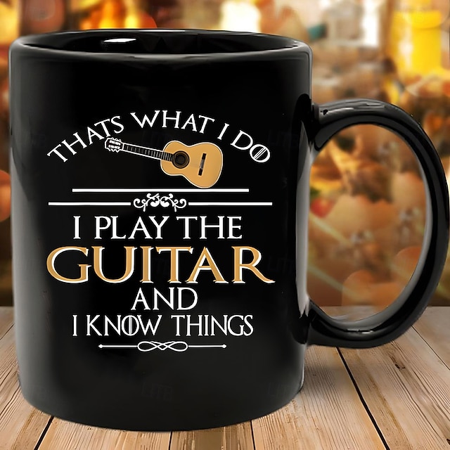 hauska lahjamuki, sitä minä teen, soitan kitaraa ja tiedän asioita, musta keraaminen kahvimuki, humoristinen musiikin ystävän kuppi, lahja kitaristeille, muusikoille, bändin jäsenille ja rock-faneille#14186406
