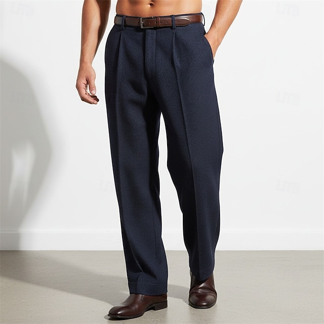 Miesten Housut Puvunhousut Vohveli housut Edessä tasku Suora jalka Yhtenäinen väri Raita Mukavuus Täyspitkä Päivittäin liiketoiminta Pyhäpäivä Muoti Tyylikästä ja modernia Musta Laivaston sininen #14558828