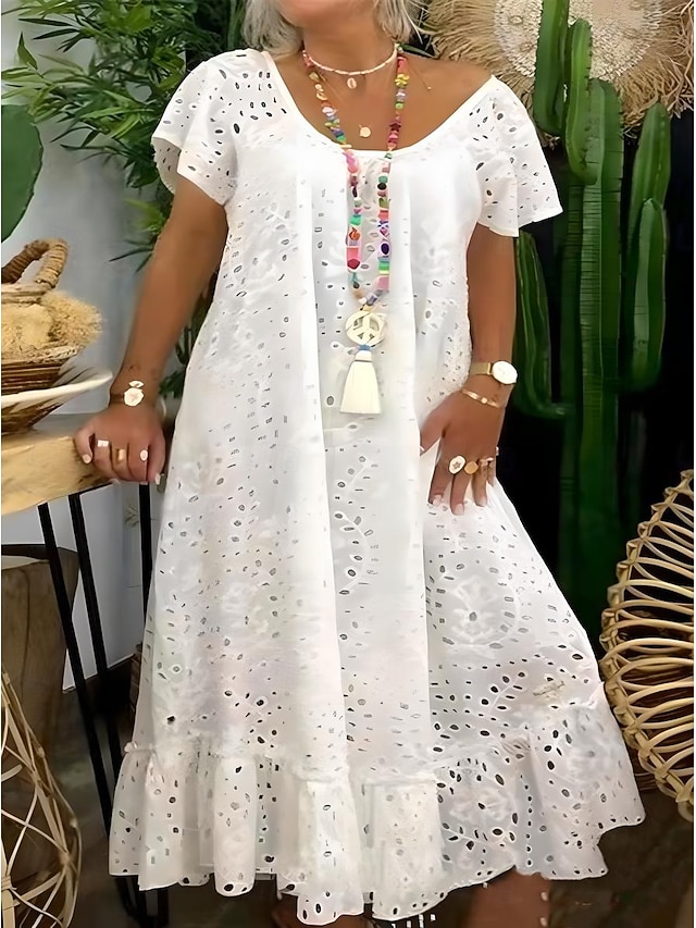 Naisten Pitkä mekko Maxi mekko Valkoinen mekko Pitsimekko Rento mekko Kesämekko Katutyyli Maxi Katu Deitti Loose Fit Lyhythihainen Tiukka pyöreä kaula-aukko Musta Valkoinen Kesä #14574471