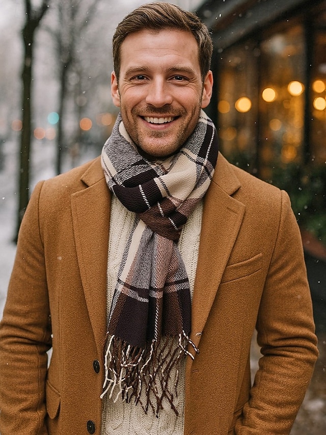 Miesten villajäljitelmäpolyesterihuivi, ruudullinen kuvio, useita värejä, täydellinen lahjaksi #15901150