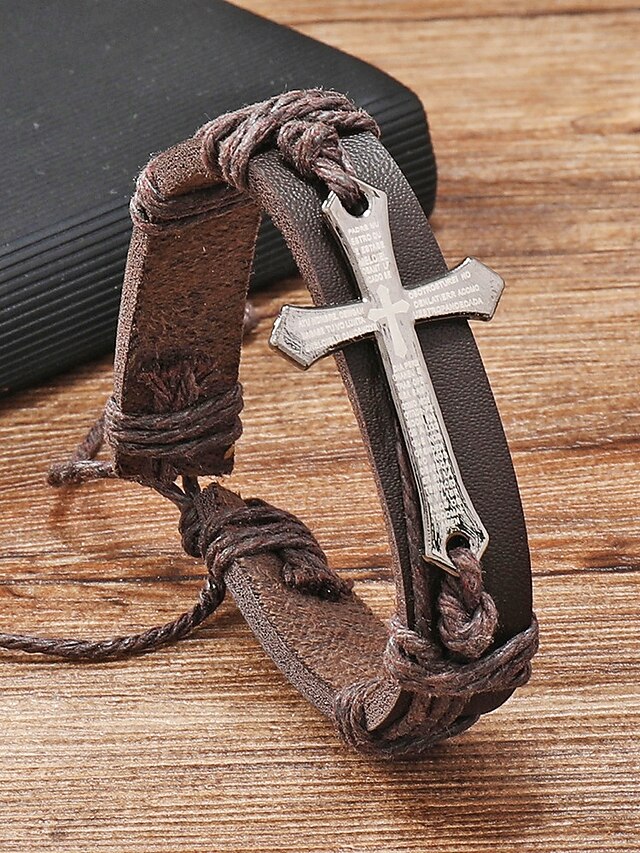 Miesten keinonahkainen ristirannekoru, säädettävä koko, kestävä ja tyylikäs, sopii erinomaisesti arkeen ja vapaa-aikaan#16313977