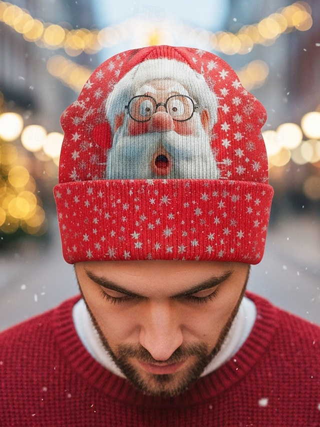 Miesten jouluinen pipo – joulupukki- ja piparkakkuaiheinen, mukavasta neulotusta materiaalista, täydellinen juhlapyhiin, talviretkiin ja joululahjoiksi#16799424