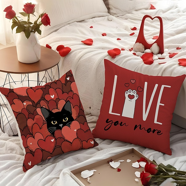 Ystävänpäivän kissakuvioinen tyynynpäällinen, sydänkuvioinen koristetyyny, täydellinen sohvalle, olohuoneeseen, makuuhuoneeseen, ihanteellinen romanttisen lomatunnelman luomiseen ja viihtyisään#17870048