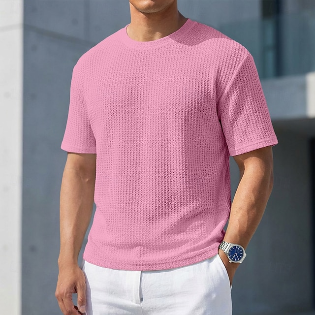 Miesten T-paita Lihaspaita Ribbineulos T-paita Lyhythihainen Lyhyt hiha Tiukka pyöreä kaula-aukko Kesä Tavallinen Pintakäsitelty Pit Strip Muoti Suunnittelija Perus Crewneck Kausaliteetti Loma Katu #18890752