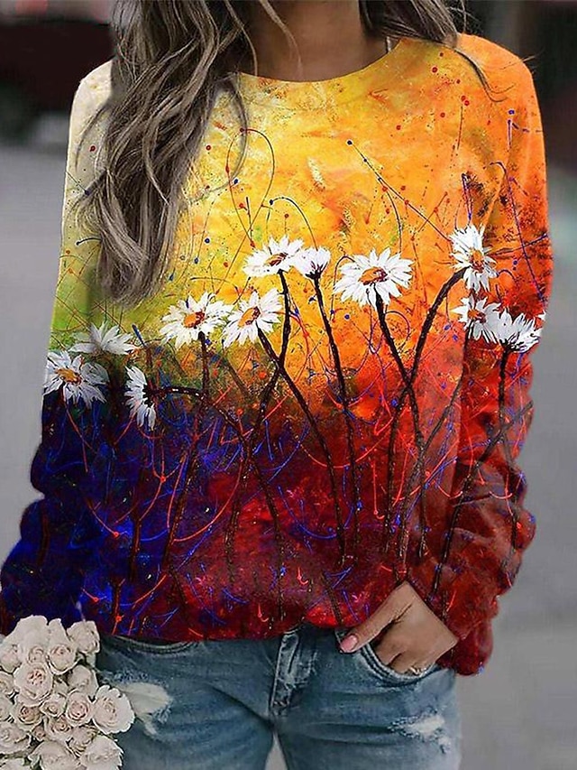 Naisten Pullover-huppari Painettu Kuvitettu Vapaa-aika Pitkähihainen Tiukka pyöreä kaula-aukko Tavalliset topit Kausaliteetti Katu Pyhäpäivä Sininen Valkoinen Keltainen Taivaan sininen Purppura Kevät #19088734