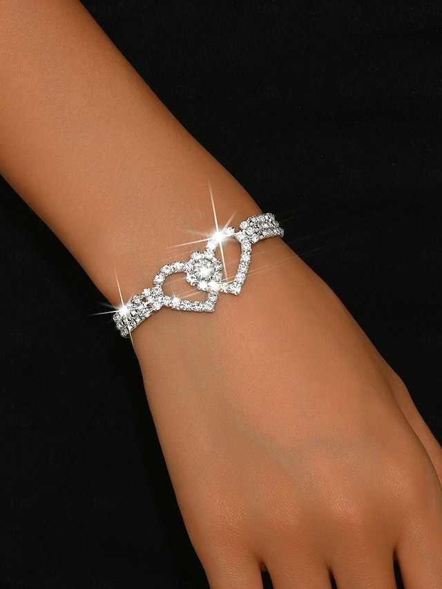 Naisten kimalteleva strassilla koristeltu sydänrannekoru - elegantti kristallilenkkikuvio, siro ja näyttävä rannekoru juhliin ja iltoihin &erityistapahtumat#19487429