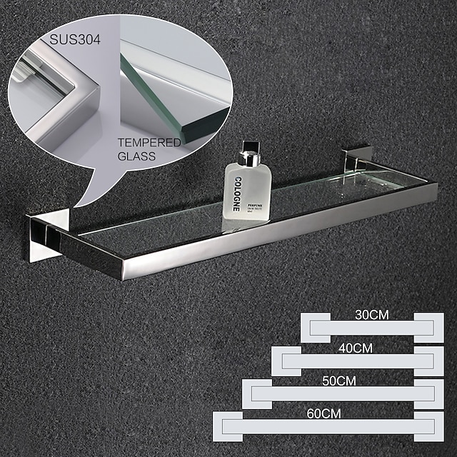 Kylpyhuonehylly / Kylpyhuonesetti Säädettävä pituus / Uusi malli / Luova Nykyaikainen / Moderni Ruostumaton teräs / Karkaistu lasi / Metalli 1kpl - Kylpyhuone Seinäasennus #8783857