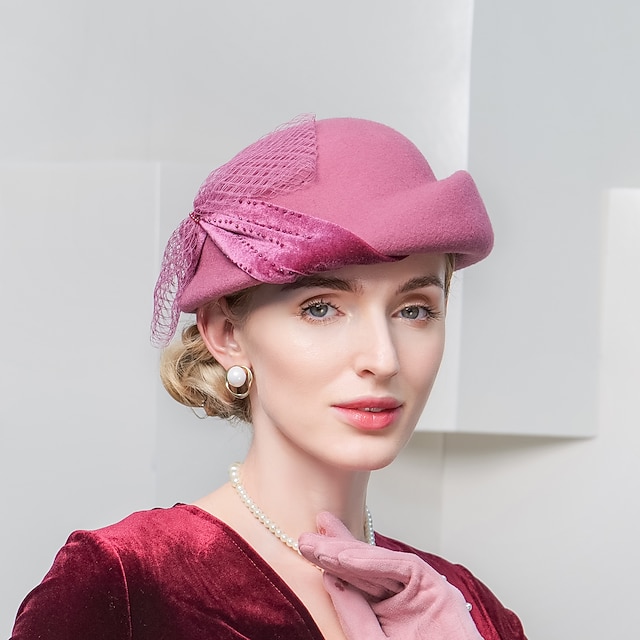 Vintage-tyyli Tyylikäs 100% villa / Sametti hatut kanssa Ruseteilla / Koristehelmillä / Reunat 1kpl Kausaliteetti / Pyhäpäivä Päähine #9349068