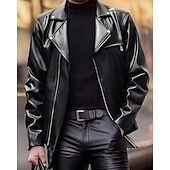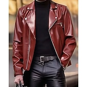 Miesten Nahkatakit Biker takki Moottoripyörä takki Loma Päivittäin Tuulenkestävä Pidä lämpimänä Tasku Syystalvi Tavallinen Muoti Klassinen Kauluskäänne Normaali Musta Rubiini Jackets