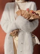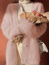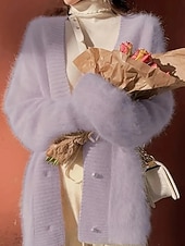 Naisten Neulos Neule Tyylikäs Muoti Katutyyli Puhdas väri V kaula-aukko Tasku Kudottu Pitkähihainen Tavalliset topit Neuloa ulko- Päivittäin Viikonloppu Vaalean sininen Syksy Talvi #10686976