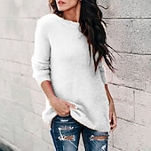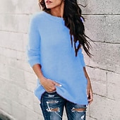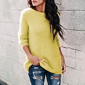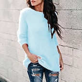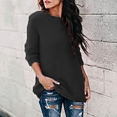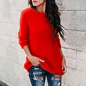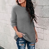 Naisten Neulos Pusero Katutyyli Vapaa-aika Puhdas väri Joustin Tiukka pyöreä kaula-aukko Kudottu Pitkähihainen Pitkät topit Neuloa ulko- Päivittäin Viikonloppu Kuuma pinkki Punastuvan vaaleanpunainen #13213187