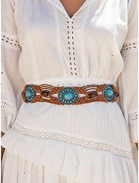 Naisten boheemi vahanurmivyö turkooseilla kivikoristeilla, säädettävä punottu vyö, monivärinen vintage-tyylinen asuste naisille, täydellinen jokapäiväiseen käyttöön, lomalle, rannalle ja lomakohteeseen