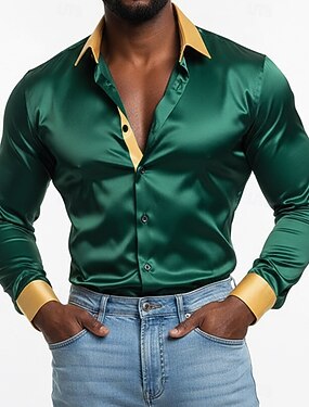 Miesten Paita Satiini paita Pukupaita Button Up paita Prom paita Yhtenäinen väri Tanssiaiset Häät Musta Rubiini Sininen Apila Pitkähihainen Sänkyjen avaus Kaikki vuodenajat Vaatetus Perus