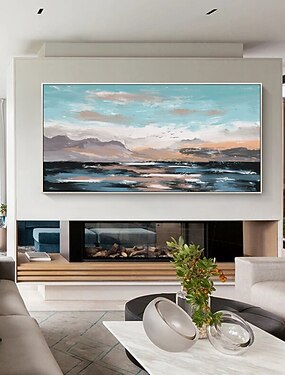 suuri alkuperäinen teksturoitu abstrakti maisemaöljymaalaus kankaalle, suuri seinätaide moderni olohuoneen seinäkoriste