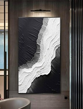 käsintehty öljymaalaus kankaalle seinätaidekoristelu moderni abstrakti maisema mustavalkoinen aaltokuvio kodin sisustukseen rullattu kehyksetön venyttämätön maalaus