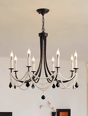 Rautainen kynttilätyylinen kattokruunu mustekristallilla, säädettävä ketju 6/8 päätä musta
