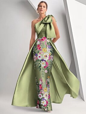 A-linja Tuubi Kokopitkä Helmillä koristeltu Muodollinen mekko Morsiamen äidin mekko Iltapuku Tanssiaispuku hameen päällä Tyylikäs Kimalteleva Kukka-aihe Hihaton Yksiolkaiminen Häät Muodollinen Satiini