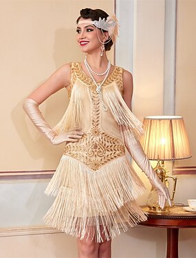 Möly 20s 1920-luku Polvipituinen Mekot Mekko Tanssiaispuku Lyhyet hihat Suuri Gatsby charleston Paljetti Tupsu V kaula-aukko Naamiaispuku Naisten Karnevaali Naamiaiset Karnevaali Iltajuhlat Häät