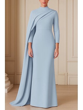 Tuubi Hipaisulaahus Tanssiaispuku viitalla Iltapuku Muodollinen mekko Tyylikäs Kimalteleva Juhlatyyli 3/4 hiha poolokaulus Puutarhajuhlat Häät Stretch Crepe kanssa Rypytetty