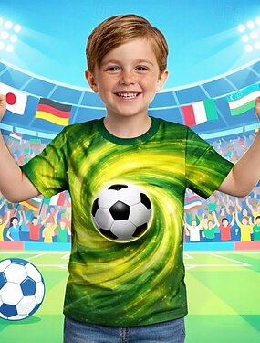 Poikien 3D Kuvitettu Jalkapallo Jalkapallo T-paidat T-paita Lyhythihainen 3D-tulostus Kesä Kevät Urheilu Muoti Katutyyli Lapset 4-12 vuotta Tiukka pyöreä kaula-aukko Kausaliteetti Päivittäin ulko-