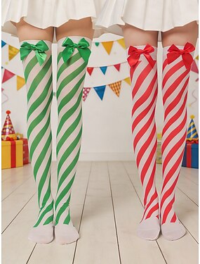 Naisten polven yli ulottuvat karnevaalisukat, raidalliset rusettireisikorkuiset sukkahousut, joustavaa pehmeää kangasta, juhlava naamiaistyyli, aikuisille &teini-ikäiset, täydellinen