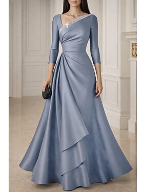 A-linja Kokopitkä Häävieraspuku Muodollinen mekko Leveähelmainen mekko Morsiammen äidin asu 3/4 hiha Kuningatar Anne Tyylikäs Korkea jaettu Muodollinen Satiini kanssa Rusetti(rusetit)