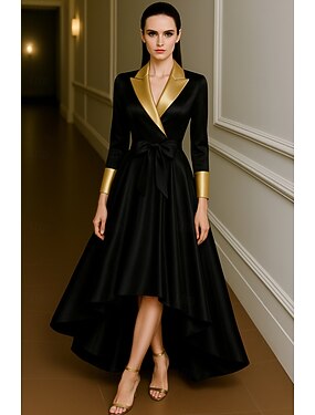 Naisten Smokkimekko A-linja Häät Muodollinen Häävieras Satiini Tyylikäs Pitkähihainen Epäsymmetrinen Peak käänne