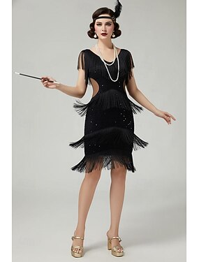 Möly 20s 1920-luku Mini Mekot Hihaton Suuri Gatsby Tupsu Paljetti Tupsu V kaula-aukko Naamiaispuku Naisten Klubi Illanviettoon ja erikosilaisuuksien Retro-teemaiset juhlat Aikuiset Leninki Kesä
