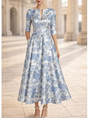 A-linja Nilkkapituinen Muodollinen mekko Cocktailmekot Tyylikäs Puolihiha Tiukka pyöreä kaula-aukko Häät Cocktailjuhla Jakardi kanssa Rusetti(rusetit)