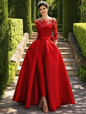 Trumpetti merenneito Hipaisulaahus Iltapuku Tanssiaispuku hameen päällä Muodollinen mekko Tyylikäs Juhlatyyli 3/4 hiha V kaula-aukko Puutarhajuhlat Häät Satiini Pitsi kanssa Laskokset Paljeteilla