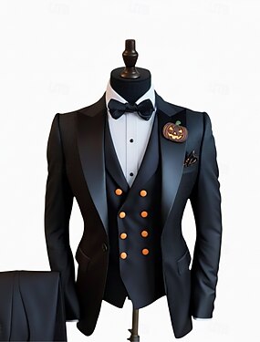 Miesten Juhlapuvut Kausaliteetti Halloween Musta Syystalvi Puku Lovikäänne Juhla Vapaa-aika Yhtenäinen Räätälöity istuvuus 3-osainen setti Yksirivinen yksi nappi