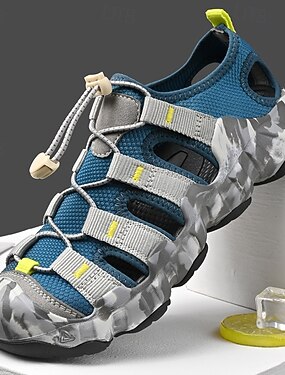 Miesten siniset naamiointikuvioiset vaellussandaalit pikalukitushihnoilla, kestävät ja mukavat, täydelliset ulkoiluun ja seikkailumatkoille