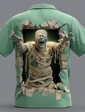 Miesten Zombeja Mummy Säröillä oleva seinä Paita Button Up paita Lyhythihainen Tumma goottilainen tyyli Pyhäpäivä Katuvaatteet Kesä Kevät Sänkyjen avaus 3D-tulostus kauluspaidat Vaalean vihreä Apila