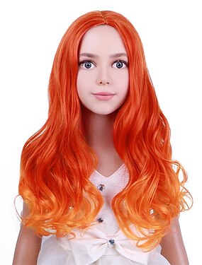 Carnival-peruukki 2026 Oranssi Kihara Laineita Pitkä Synteettinen festivaaliperuukki Mardi Gras Paraati Cosplay-asun hiukset varten Tyttöjen