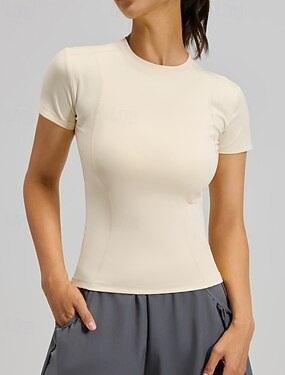 Naisten College T-paita Jooga-toppi Tiukka pyöreä kaula-aukko Nopea kuivuminen Kevyt Mukava Lyhythihainen Urheilu Yhtenäinen väri Topit varten Kuntosaliharjoitus Juoksu Kunto Urheiluvaatteet