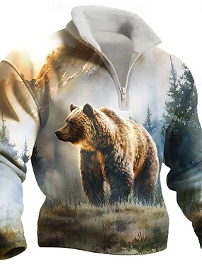 Miesten Hirvet Huppari Hupparit Puserot College Kantri Vapaa-aika Pitkähihainen Hupullinen Katuvaatteet Urheilu ja ulkoilu Sininen Kastanjanruskea Tumman vihreä Ruskea Tasku 3D-tulostus Syksy Talvi