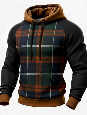 Miesten Geometrinen Skottiruutukuvio Huppari College Muoti Päivittäin Pitkähihainen Tiukka pyöreä kaula-aukko Koti Katuvaatteet Juhla Sininen Ruskea Apila Kurenauha Syksy Talvi Suunnittelija S M L XL