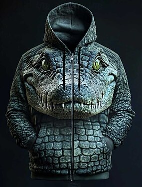 Miesten vetoketjullinen huppari, 3D-krokotiilikuvio, realistinen alligaattorieläinkuvio, katutyyli, collegepaita, vaatteet, koko s m l xl xxl xxxl