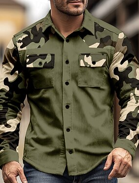 Miesten naamiointi Armeijatyyli Vakosamettipaita Länsimainen paita Paidan takki Pitkähihainen Vintage retro ulko- Työasut Syksy Talvi Sänkyjen avaus 3D-tulostus Cowboy-paidat Takki läpällisill